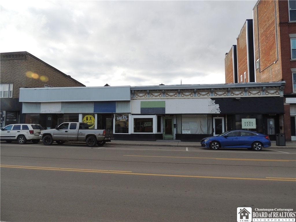 Are you looking for a storefront for your business or just looking for your next investment for years of future income? Take a look at this Falconer commercial location, located on one of the highest traffic count intersections in the county. It is currently bringing in $2,000 a month from the 2 recently remodeled store fronts but has 3 more storefront spaces in various stages of remodel which can bring in thousands more per month. Also many other possibilities for additional income by renting out the warehouse and or garage bays on the back side of building. Bring your visions, dreams and toolbox to finish up the other 3 retail spaces to rent and enjoy the cashflow Roof on the back half of the building needs repair or replacement, once done you have about twice the usable/rentable space.