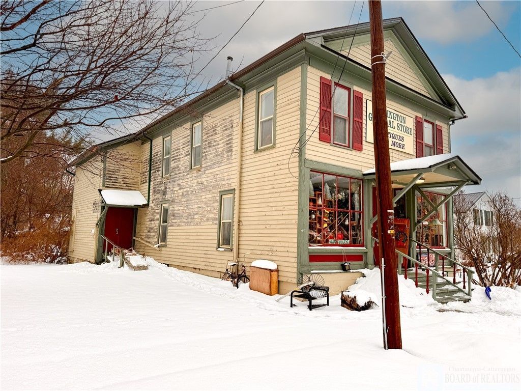 Discover a rare opportunity to own a piece of Ellington history in the heart of town! This charming historic commercial building sits right on the town square and is currently known as the Ellington General Store, Antiques and More. The quaint storefront offers outstanding visibility and small town charm, making it ideal for a boutique, antique shop, coffee shop, gallery, studio, or specialty retail space. The building boasts a rich past, having served over the years as Bailey and Son Dry Goods Store, the Ellington Grange, and The Ellington Farman library; adding unmatched character and storytelling value to the property. Upstairs, you'll walk into a large open meeting hall featuring the original stage, a truly unique space perfect for events, community gatherings, performances, workshops, private functions, or creative studio use or maybe a loft apartment. This second floor space alone opens the door to countless business or mixed use possibilities. With its prime location, classic architecture, and flexible layout, this property is ideal for anyone looking to start a business, expand a retail presence, or create a destination space in a charming small town setting. SELLER WILL CONSIDER SELLING WITH OR WITHOUT CONTENTS. Roof is less than 6 years old. Sold as is where as